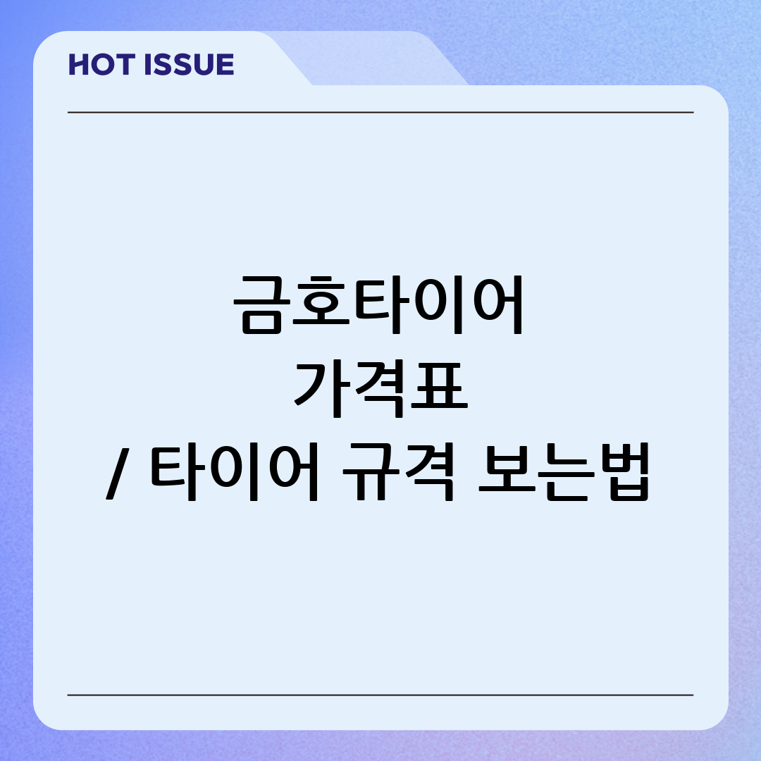타이어는 자동차의 안전과 성능에 직결되는 중요한 부품입니다. 특히, 금호타이어는 국내 대표 타이어 브랜드로서 다양한 차종과 운전 스타일에 맞는 제품들을 선보이고 있습니다. 하지만 복잡한 타이어 규격과 가격 때문에 어떤 제품을 선택해야 할지 고민이신가요? 이 글에서는 금호타이어 가격표를 상세히 분석하고, 타이어 규격을 쉽게 이해하는 방법을 알려드려 내 차에 꼭 맞는 타이어를 선택하는 데 도움을 드리고자 합니다.