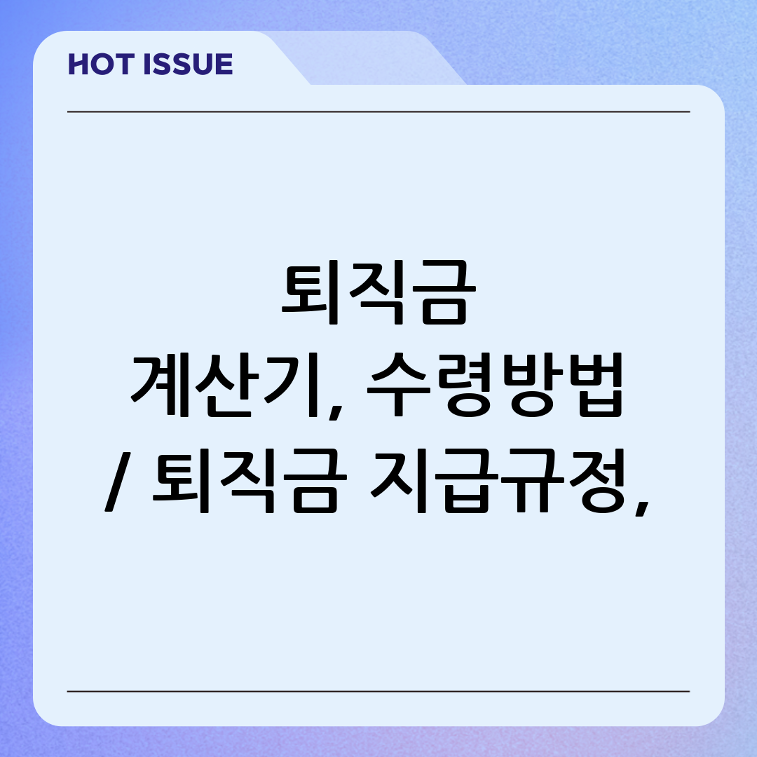 퇴직금은 직장 생활의 마침표를 찍는 순간, 그동안의 노고에 대한 보상으로 주어지는 소중한 자산입니다. 하지만 퇴직금 계산 방법, 수령 절차, 지급 기한 등 복잡하게 느껴지는 부분들이 많아 막막하게 느껴질 수 있습니다. 이 글에서는 퇴직금 계산기 사용법부터 퇴직금 수령방법, 퇴직금 지급규정 및 기한까지, 퇴직금과 관련된 모든 궁금증을 속 시원하게 해결해 드리겠습니다.